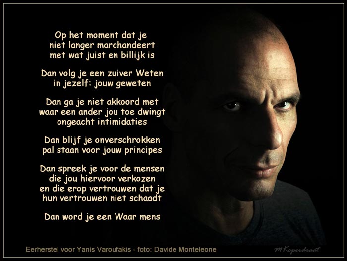 Griekenland, dat hunkerend naar hoge leningen zijn levensloop veronachtzaamde en zijn lot in bankenhanden legde om in de Eurozone te kunnen treden, ‘sliep’. De bankenwereld, die vervolgens zelf de crisis veroorzaakte, ‘schreef hiermee geschiedenis’ en zette ‘Griekenlands leven op het spel’ (en dat van andere landen). Het is dus zinnig om ‘wakker’ te worden om misleiding en machtsmisbruik tijdig te doorzien. Het lot van de Griekse bevolking ‘was voorbeschikt’, ‘kon haar niet ontgaan’ en zij ‘worstelt ermee naar beste weten en kunnen’. Van deze worsteling was heel Europa lange tijd dagelijks getuige. En nu nog steeds zijn de minstbedeelden ernstig de dupe van de politieke veronachtzaming van Griekenlands lot.