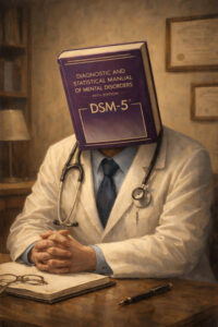Sigmund Freud’s psychoanalyse (een verdienmodel dat aan miljoenen mensen onuitspreekbaar leed heeft toegebracht) fabriceerde een systeem waar geen argument tegen bestand kon zijn en waarin patiënten als ‘slachtoffer’ zelf geen inzicht of oordeel zouden kunnen hebben. Het heeft gruwelen voortgebracht als lobotomie en shocktherapie. De psychiatrie is vooral weinig praten en veel pillen. Het Diagnostisch en Statistisch Handboek (DSM-V TR - meer dan 1500 pagina’s) fungeert als leidraad en aan de gecodeerde diagnoses hangen protocollen. Met die hamer in de hand is alles een spijker. Psychiaters zijn gedwongen te doen wat ze ‘weten’, zonder te weten wat ze werkelijk doen. Vanwege cognitieve dissonantie worden in wetenschap en geneeskunde nieuwe bewijzen of ideeën verworpen, slechts omdat ze de heersende opvattingen tegenspreken.